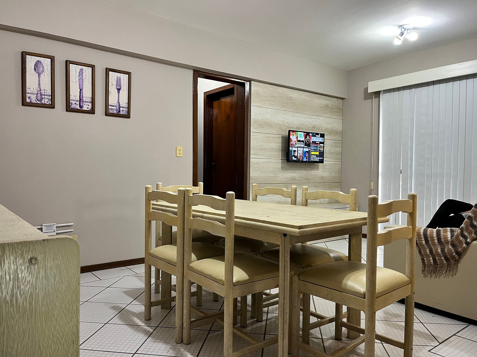 O apto acomoda até 6 pessoas.