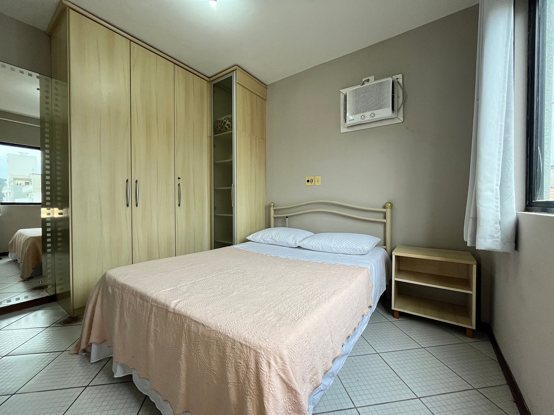 - 01 dormitório com 01 cama de casal com ar condicionado;