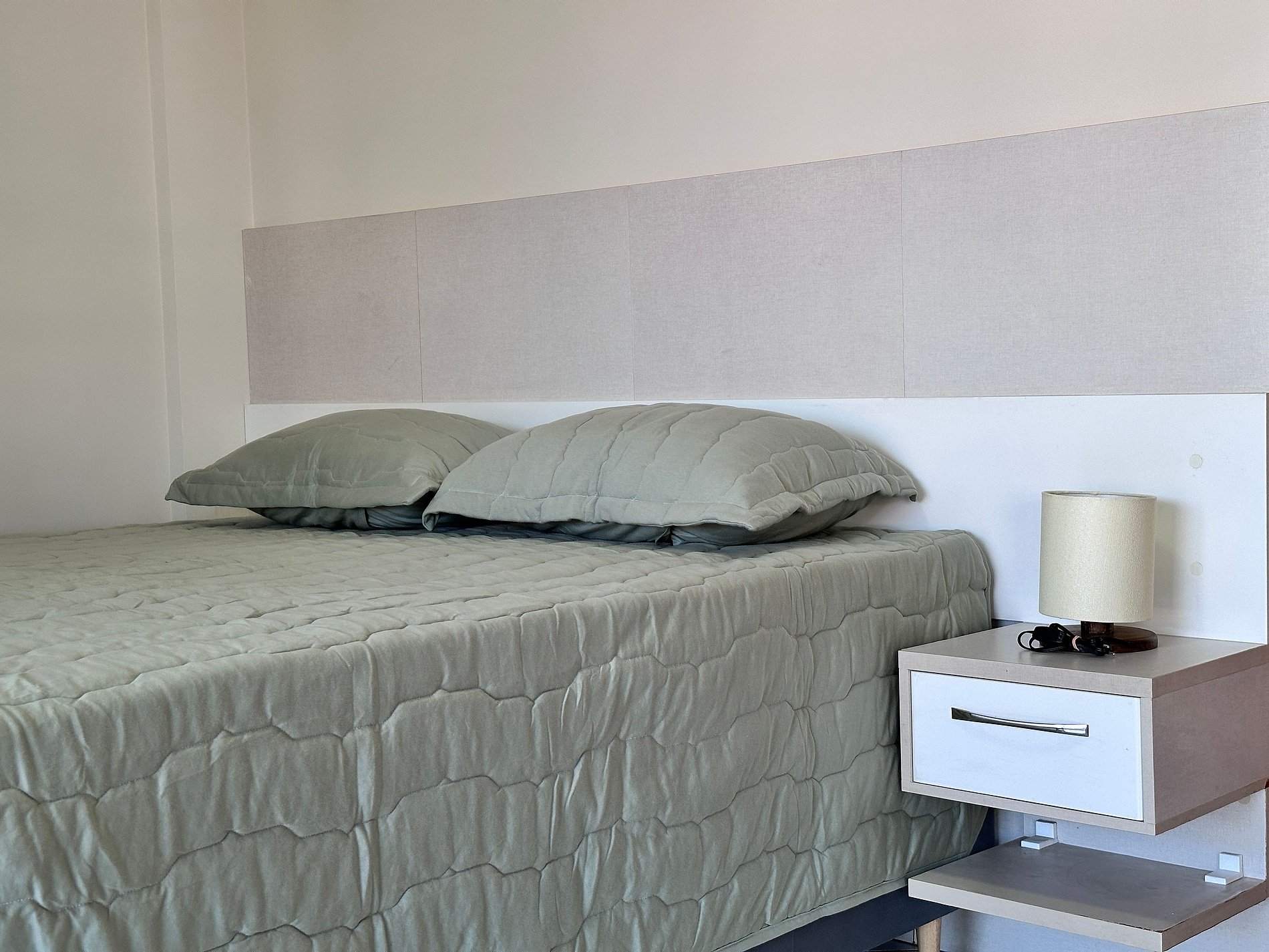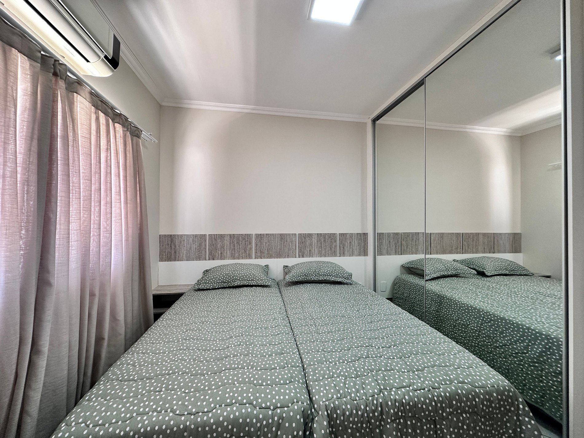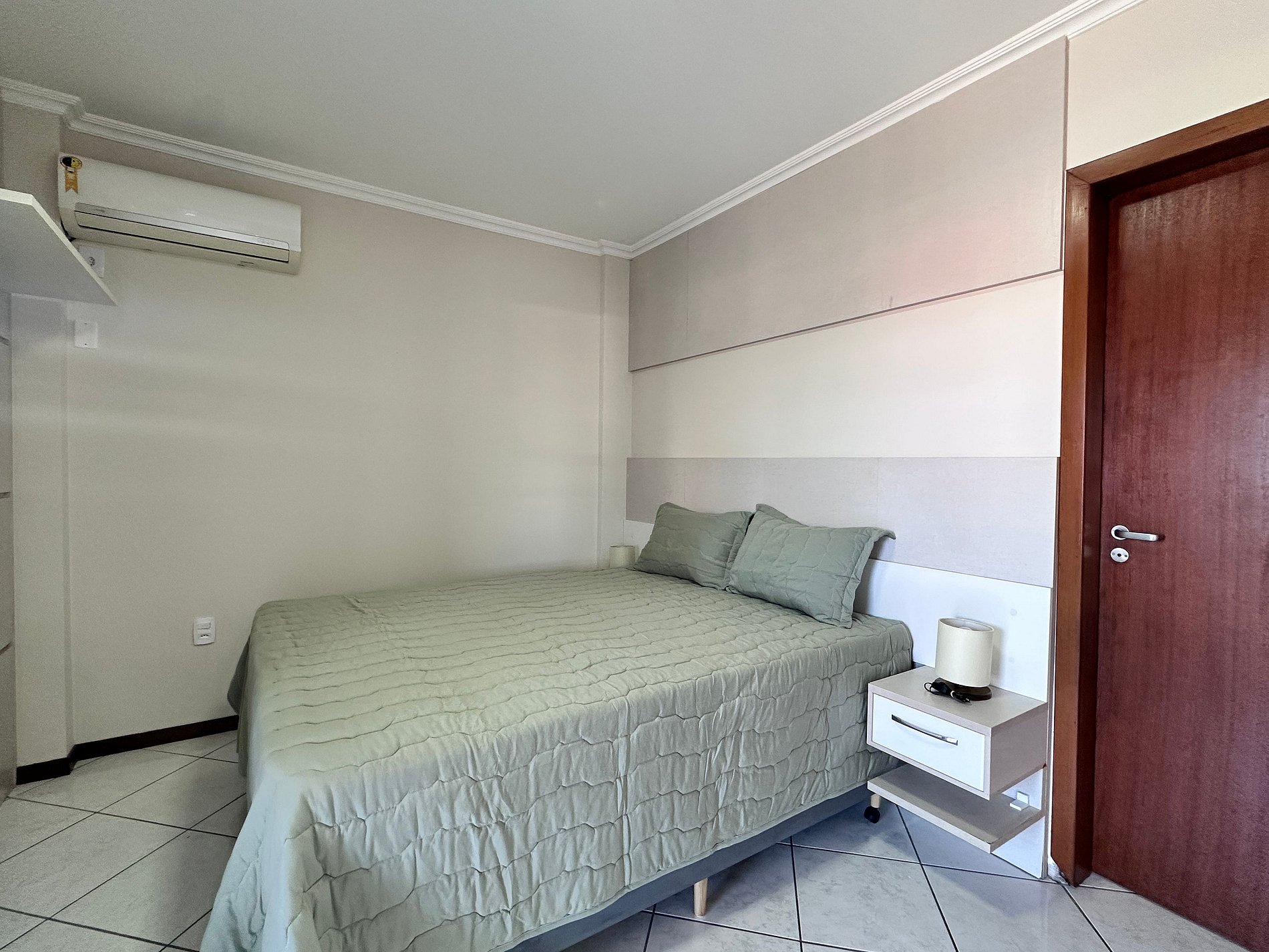 01 dormitório com 02 camas box de solteiro + 01 colchão de solteiro auxiliar, com ar condicionado;