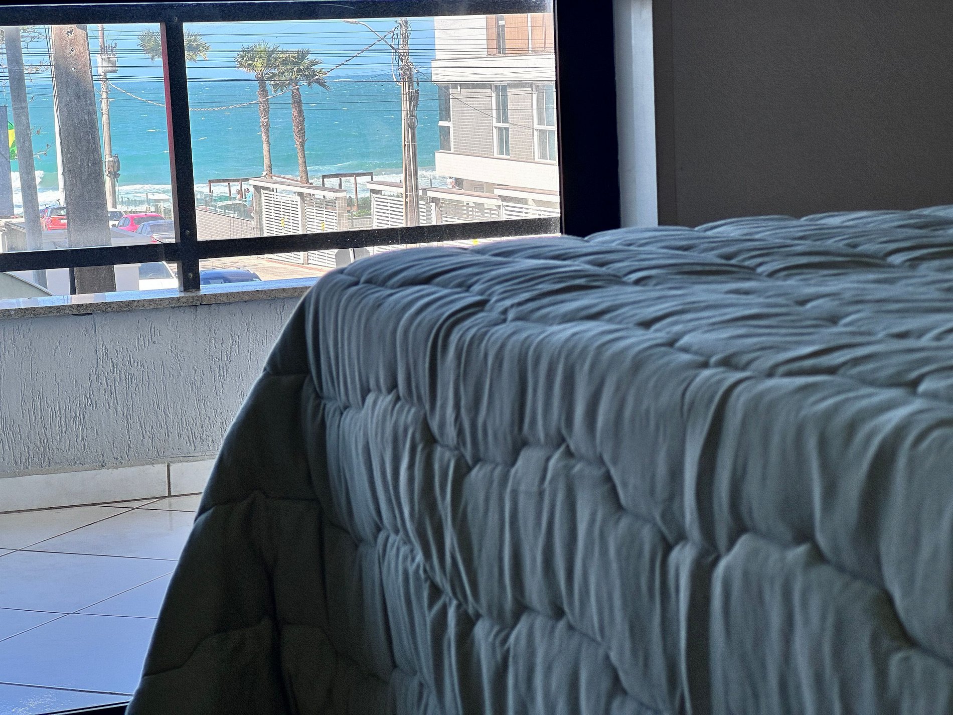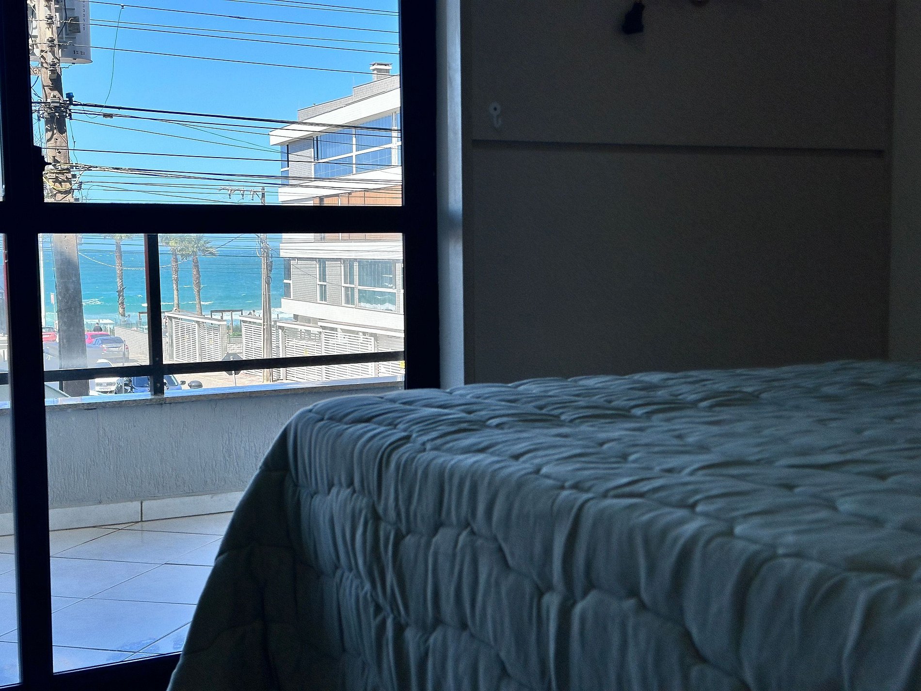 01 dormitório com 01 cama box de casal, vista para o mar + ar condicionado;