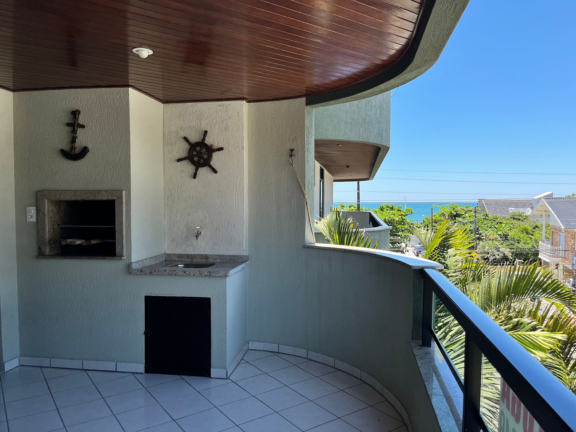 - Sacada Lateral com Churrasqueira e vista do mar;