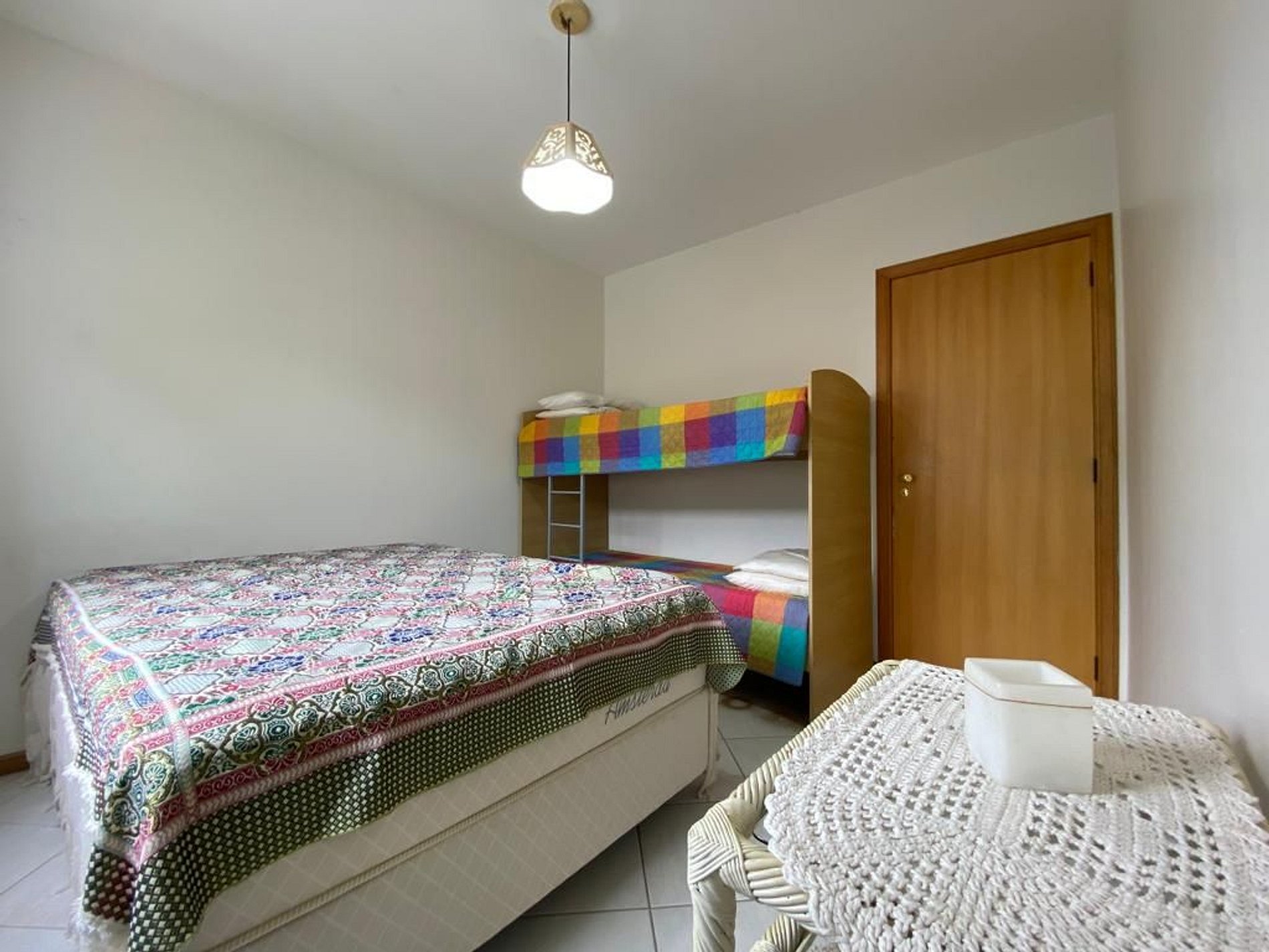✅ 01 dormitório com 01 cama de casal + 01 beliche + ar condicionado;
